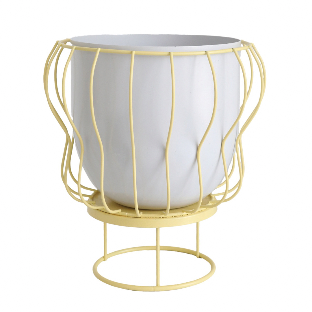 ポットを包み込むように施された曲線のワイヤーワークと、バイカラーの配色が、インテリアにポップで洗練された印象を与えます。