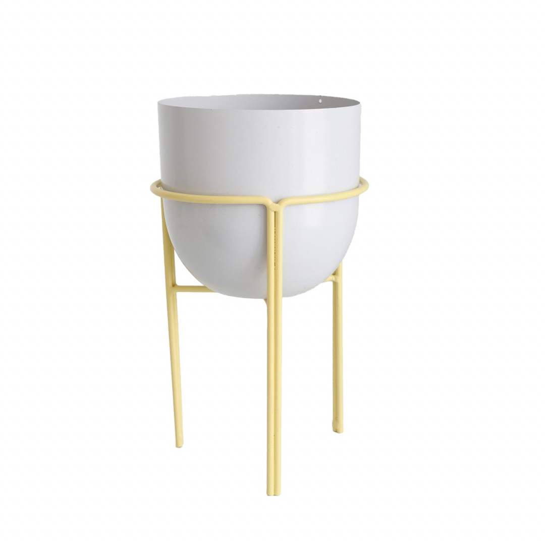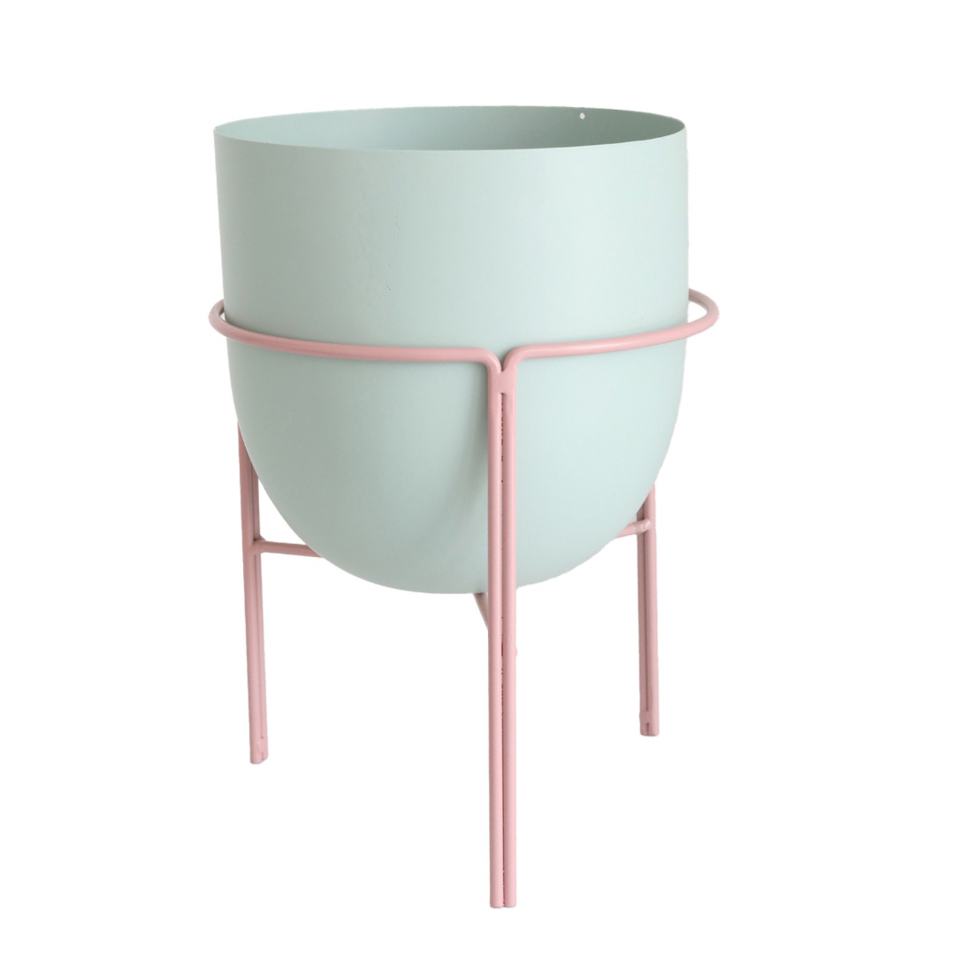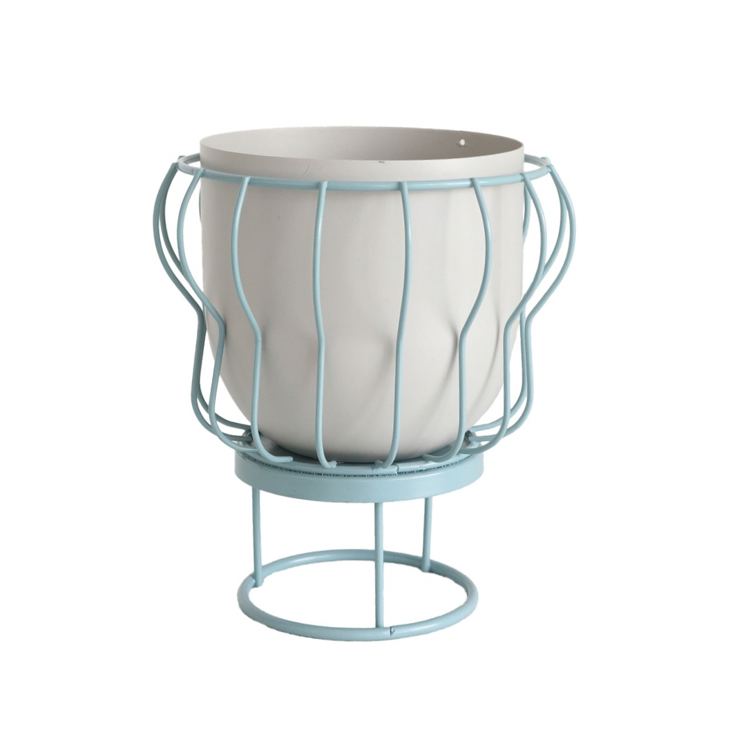 軽快なワイヤーケージと、丸みのあるポットを組み合わせたスタンドタイプのフラワーポットです。