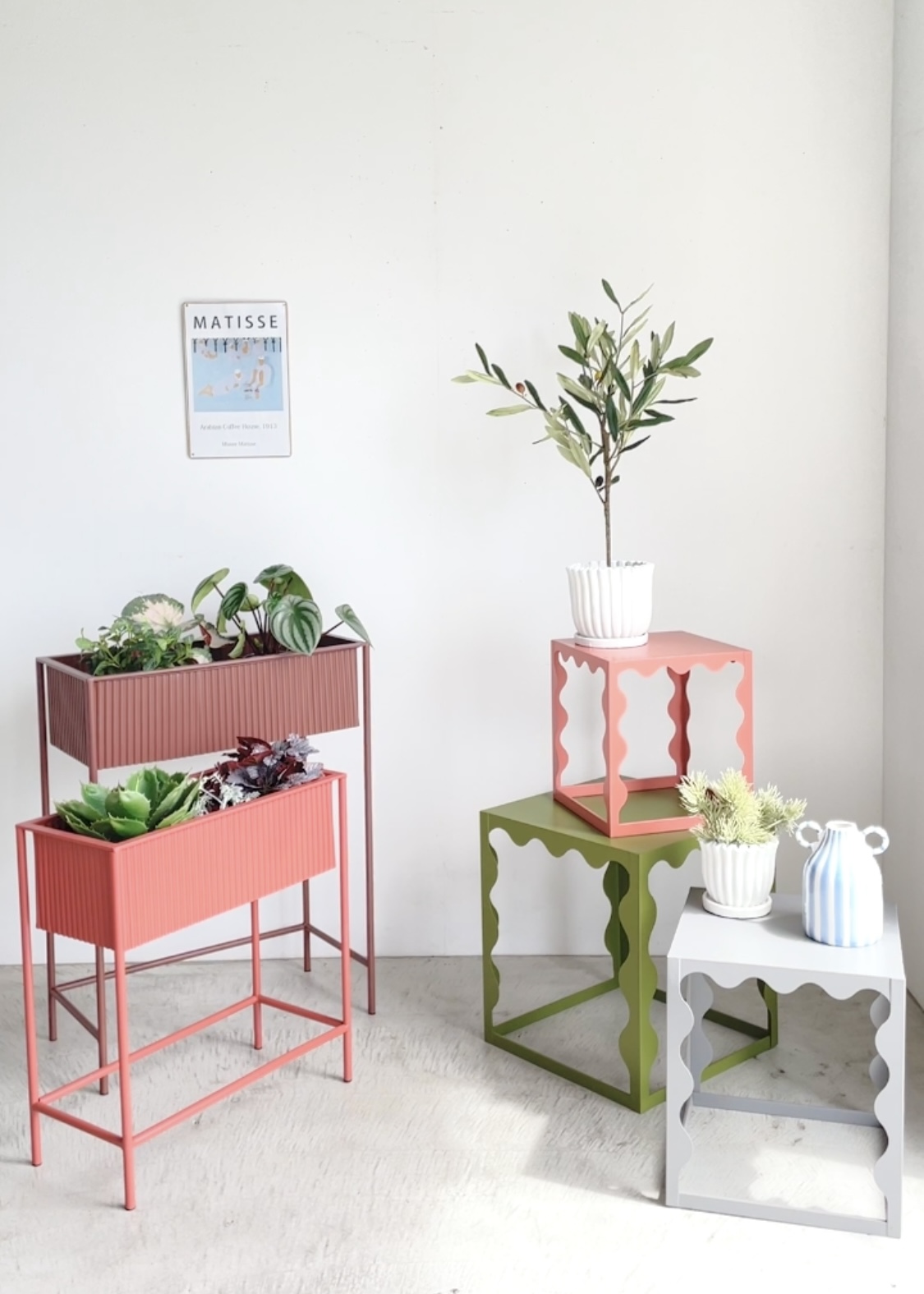 アイアン製のずっしりとした重さで、風で倒れる心配がなく、屋外での使用も安心です。