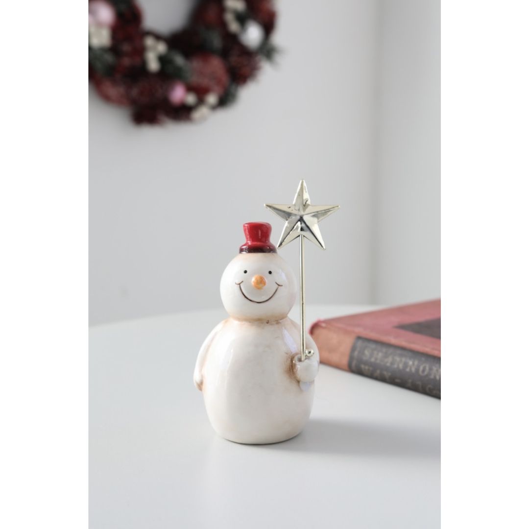 つやつやとした陶器の質感と、にっこり笑った愛嬌のある表情が魅力の雪だるまオブジェ。