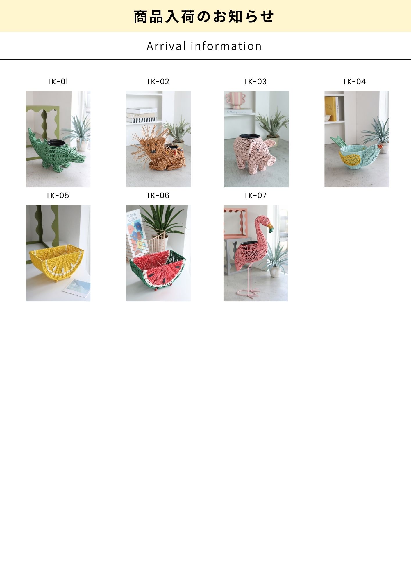 LK 商品入荷のお知らせ 1月 26, 2026 | Arrival Information 下記商品が入荷しました。 [LK-01][LK-02][LK-03][LK-04] [LK-05][LK-06][LK-07]
